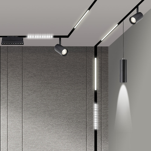 磁吸軌道燈,近兩年來非常流行,基本是無主燈設(shè)計(jì)中必備的燈具之一。磁吸軌道燈通過磁力來吸附在軌道上。現(xiàn)代磁吸燈,直接讓軌道盒嵌入吊頂里面,然后燈具吸附軌道上,后續(xù)檢修和更換燈具,調(diào)整位置都很方便!